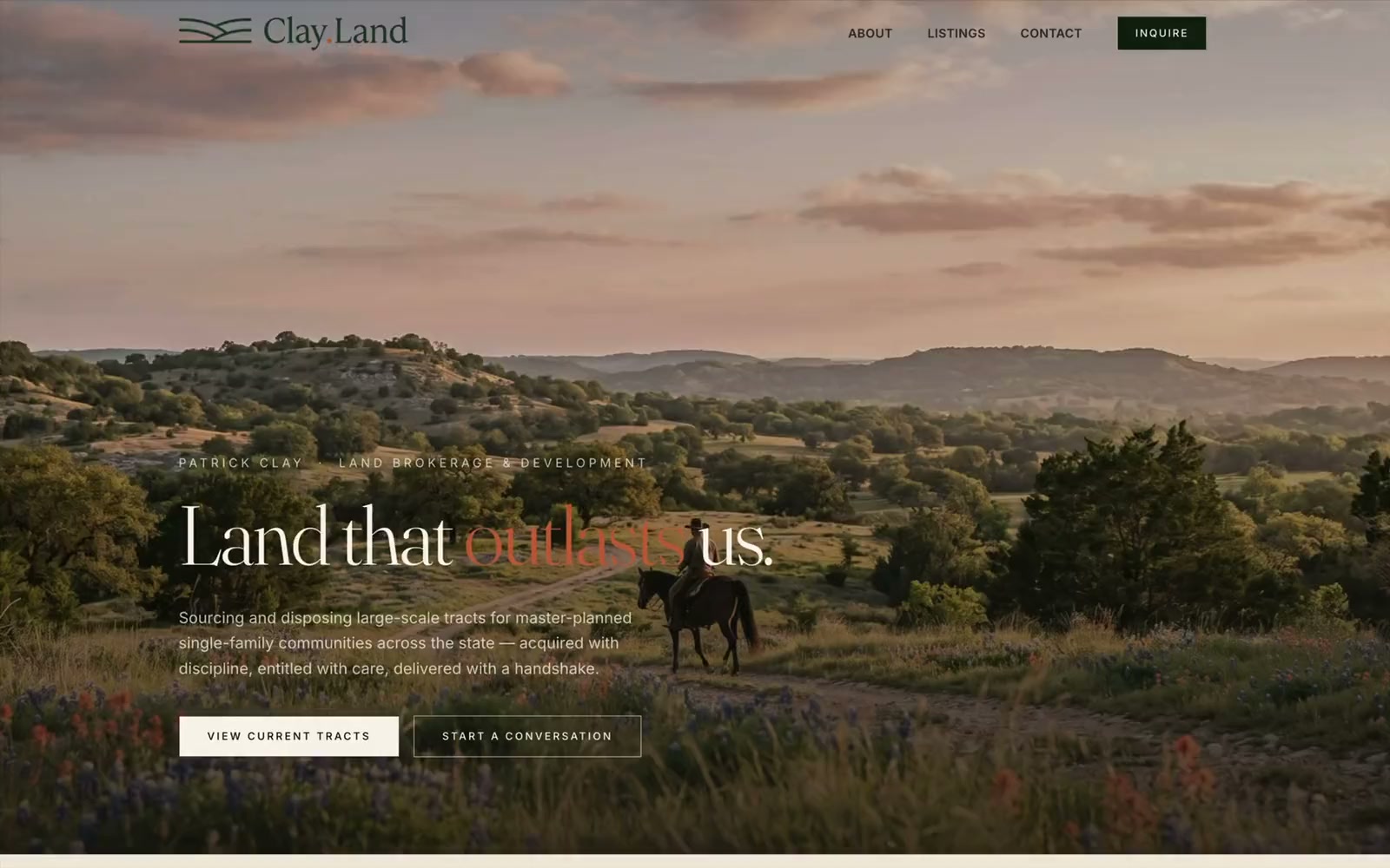 Patrick Clay · 2026 · Brand · Web · RenderingsBoutique commercial real estate development firm from Texas.
