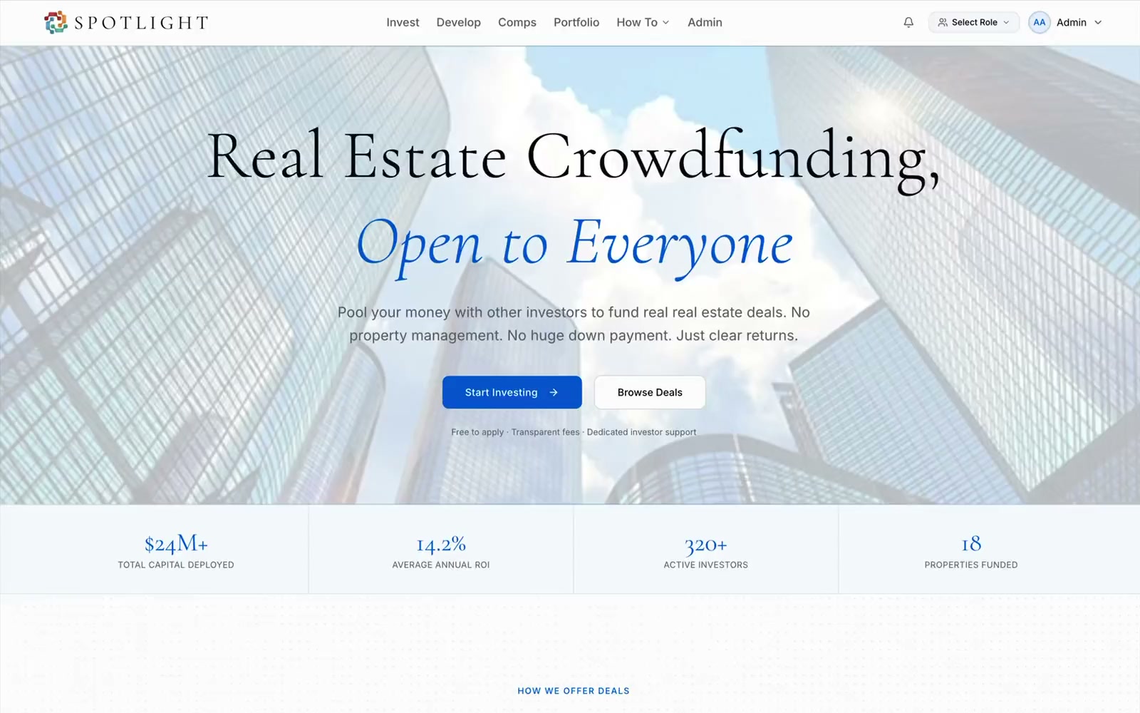 SpotlightCRE · 2024 · Brand · WebA private airport website with signed NDA & LOI submissions for investors.